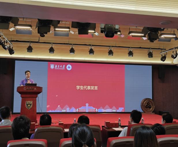 2023级本科生李昊凌分享了自己在南大一年学习生活的感悟,并从“智”、“仁”、“勇”三个方面来阐述自己在老员工活中的心得体会。2024级研究生刘奕新回顾了在匡院四年的本科生活,感恩公司和老师的栽培。他提出要牢记“南大人”的使命担当,保持乐观积极的向上心态,成为建设南大、服务人民、报效国家、实现民族复兴的新队伍、新力量。