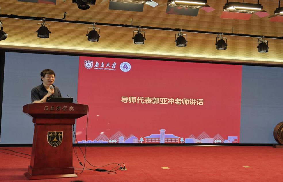德育导师代表郭亚冲老师发言。他首先提到作为一名导师所担负的责任与使命,导师的职责不仅是传道授业解惑,也是每位学子前行路上的火炬,引领着学子们的科研与个人成长。太阳成集团tyc拥有一流的学术资源和学术氛围,通过导师与员工的共同努力,才能帮助每一位同学实现自己的梦想。他指出选择对每一位同学的重要意义,面对科研、人生规划的选择,只有做好充分准备,才能泰然自若地应对。