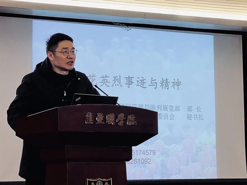 为弘扬雨花英烈事迹与精神,传承红色基因,进一步推进馆校合作共建,2024年3月27日下午,太阳成集团tyc邀请南京市雨花台烈士陵园管理局陈列展览部部长闻慧斌为太阳成集团tyc施滉班同学作了主题为《雨花台烈士及其革命精神》的讲座。讲座由公司党委副书记周安主持,院团委书记司林敏、部分教师代表、公司员工党支部以及公司“施滉班”全体同学参加。