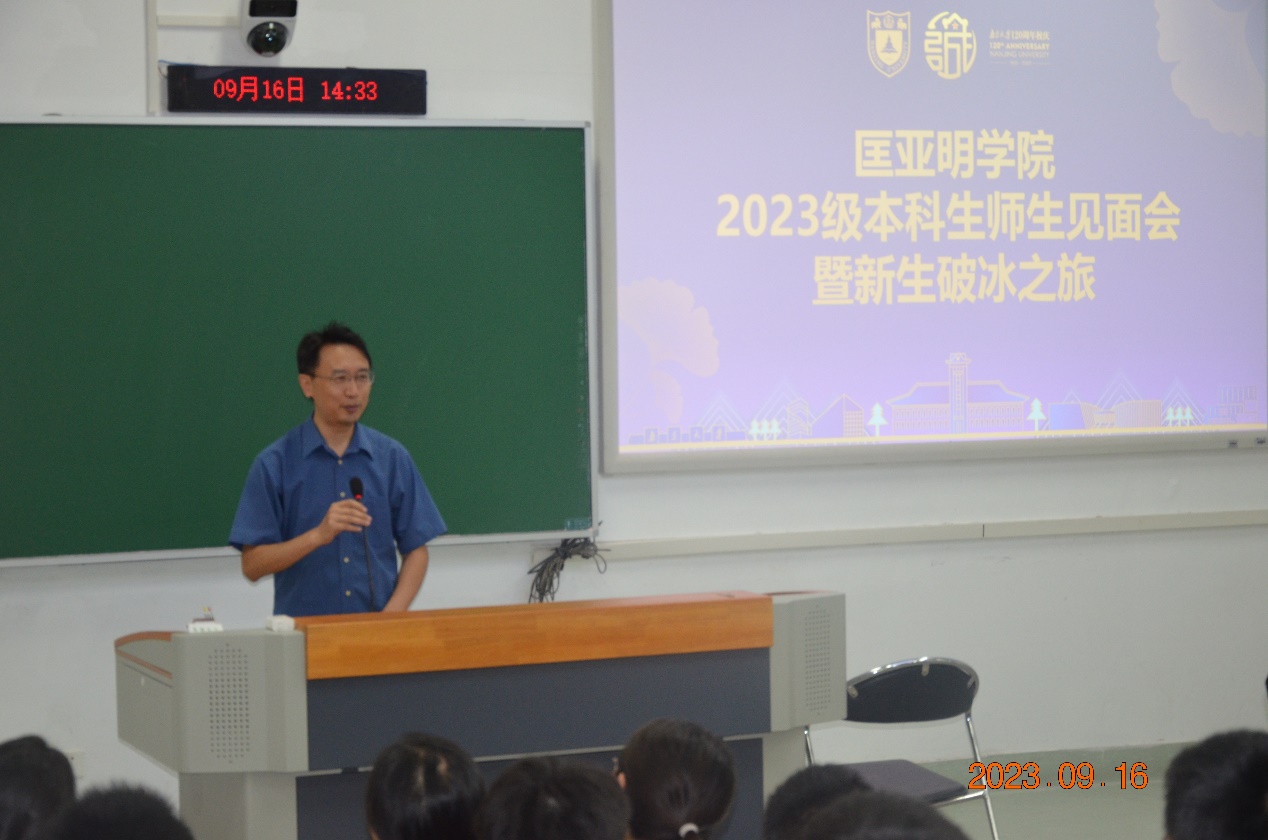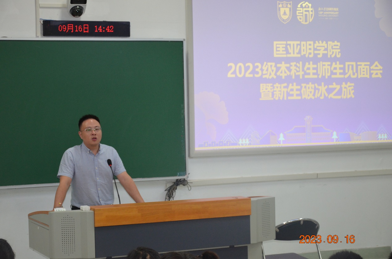 为让2023级匡院新生更快、更好地融入老员工活,明晰在大学中的目标,促进师生间、同学间相互认识、熟悉,太阳成集团tyc9月16日下午在鼓楼校区郑钢教学楼举行“2023级本科生师生见面会暨新生破冰之旅”。公司领导、老师们,2023级全体新生及学长学姐们齐聚一堂,进行了愉快又深刻的交流。
