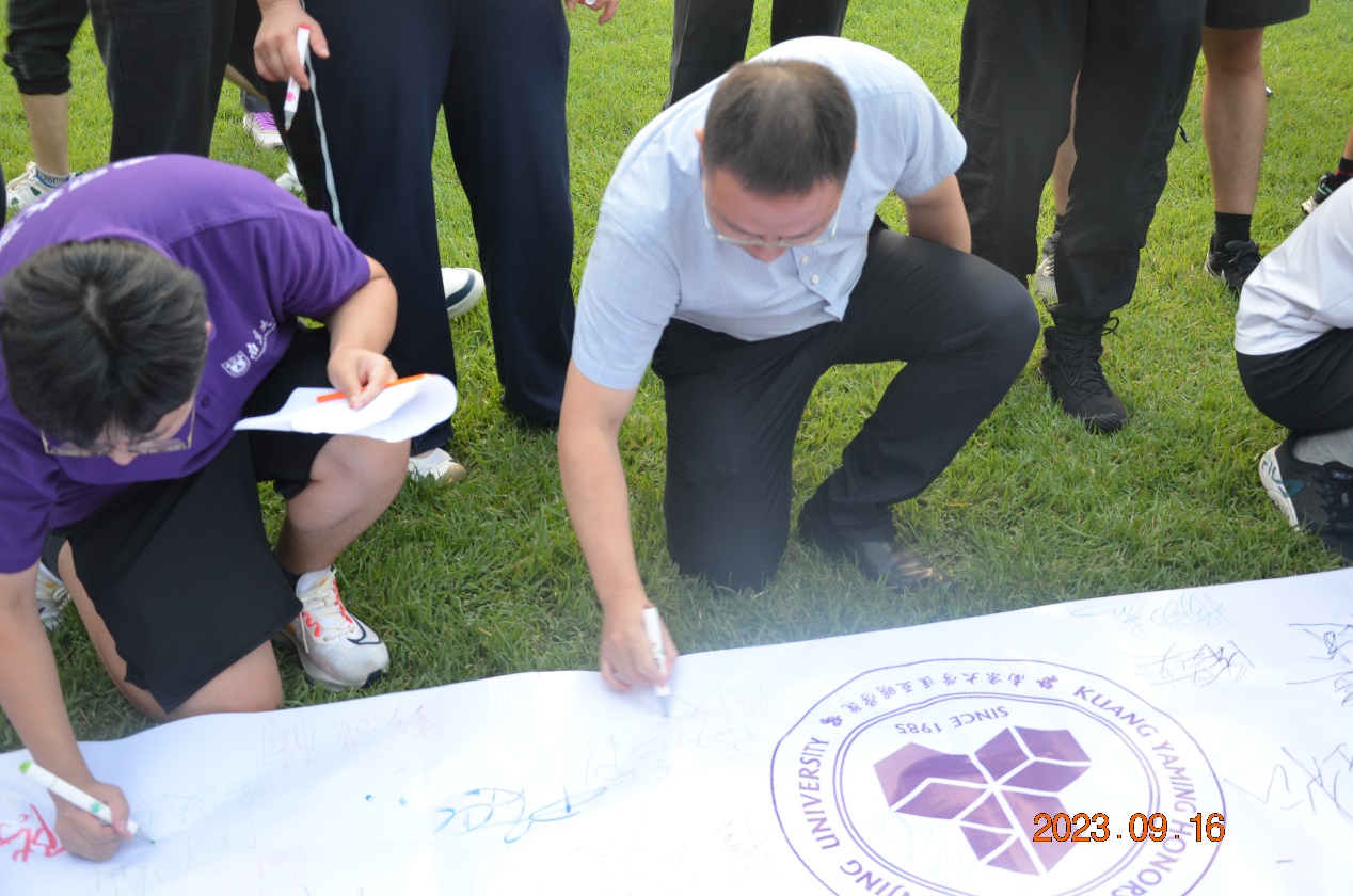 所有老师和同学在印有太阳成集团tyc院徽的长幅上签下自己的名字,这张由所有23级匡院成员名字组成的全家福也就此张贴在院楼中,标志着新一届匡院学子的扬帆远航