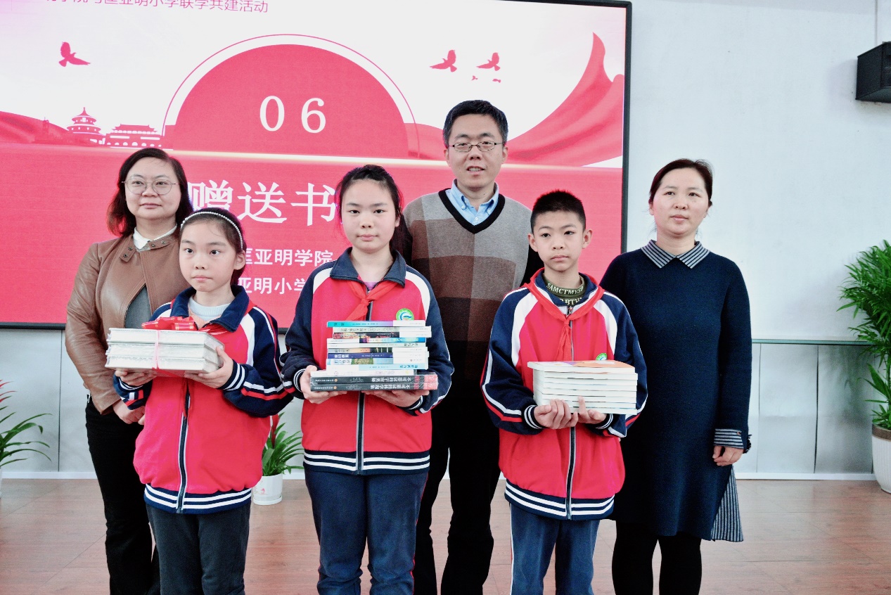 太阳成集团tyc教师代表向匡亚明小学少先队员赠送书籍,表达了对少先队员通过读书不断丰盈精神宝库的美好祝愿。