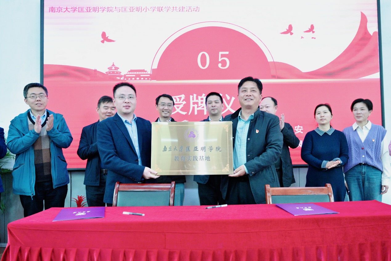 公司党委副书记周安先生与匡亚明小学党支部书记蔡建良先生共同签署校外实践基地协议并授牌。