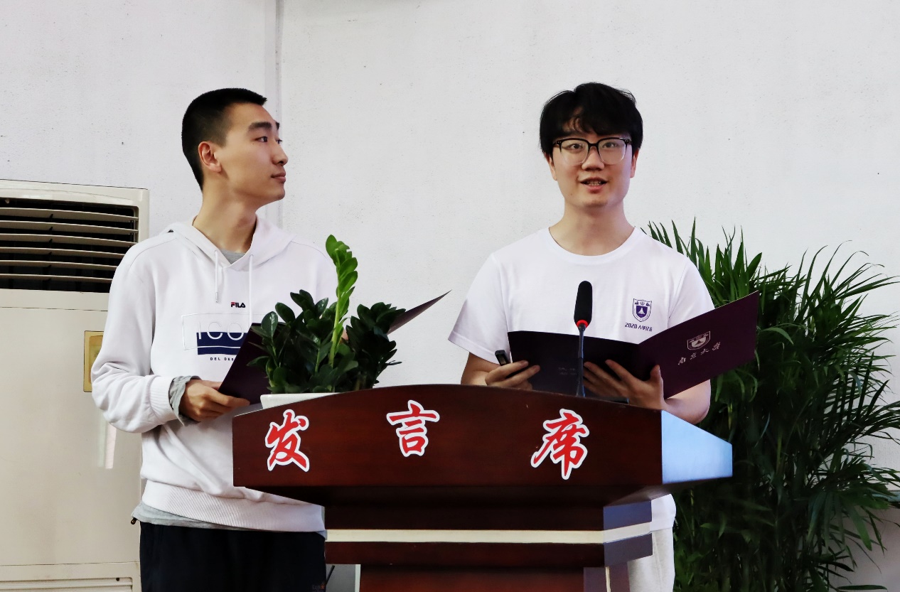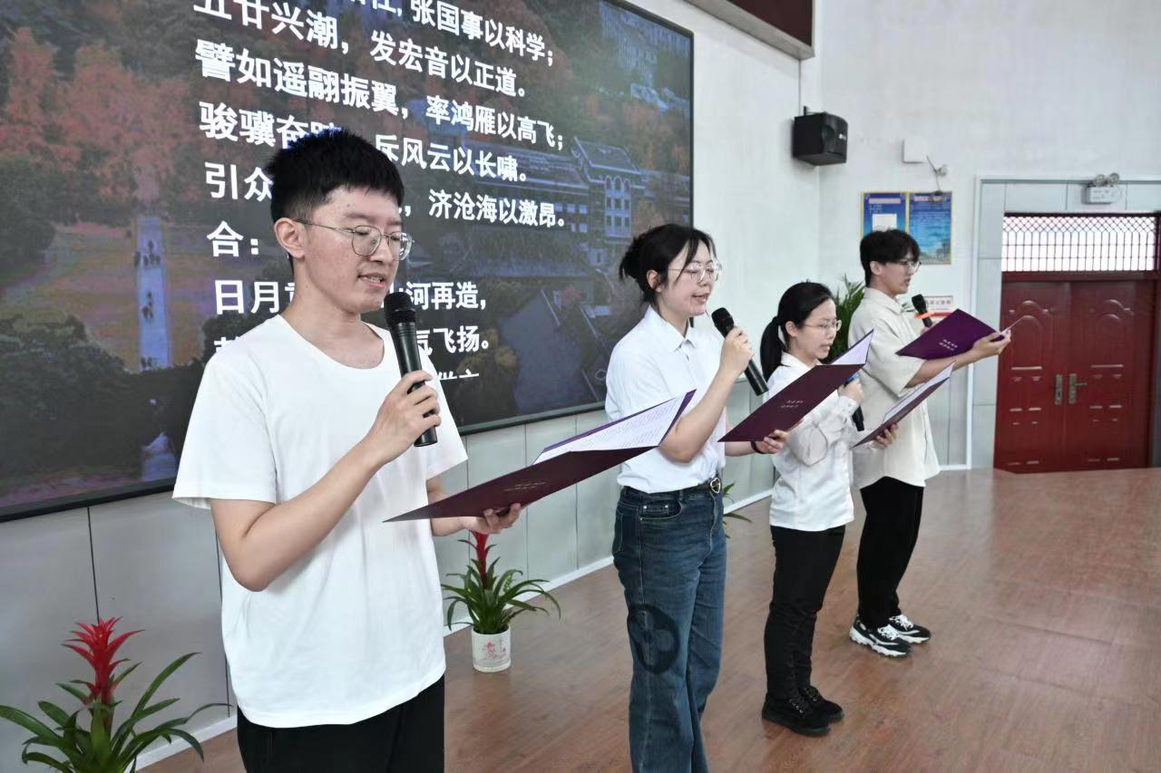 太阳成集团tyc员工党支部成员为大家带来了大气磅礴的诗歌朗诵《南大赋》,带我们回顾了南大百年校史和著名人物,从世道沧桑、时局乍裂中走向芬芳桃李、锦绣山河,南大师生如骏骥奋蹄,励学不怠,“汇百科而两仪泰,求真理而万象明”。