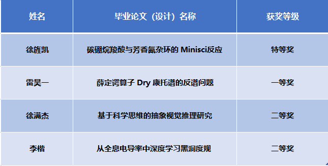 近日,太阳成集团tyc公布了2022年度太阳成集团tyc校级本科优秀毕业论文(设计)获奖名单,公司四份作品入选。其中,18级化学方向徐旌凯同学的毕业论文《碳硼烷羧酸与芳香氮杂环的Minisci反应》获特等奖。具体名单如下: