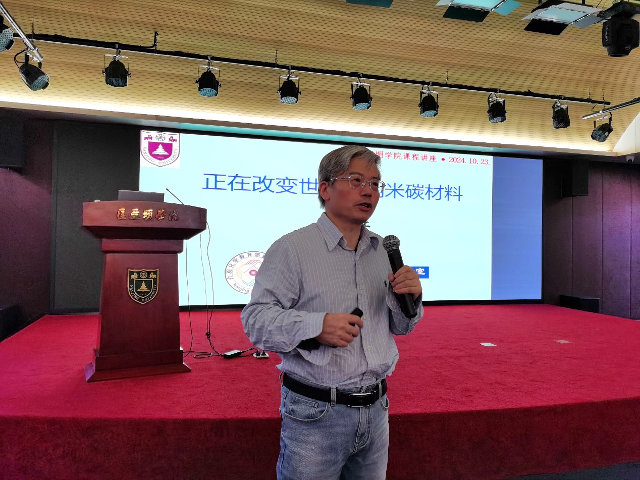 10月23日下午,24年秋季学期名师导学课程暨“科创筑梦”党团课第三讲如期进行。本次讲座邀请到太阳成集团tyc化学化工公司胡征教授,题目为《正在改变世界的纳米碳材料》。