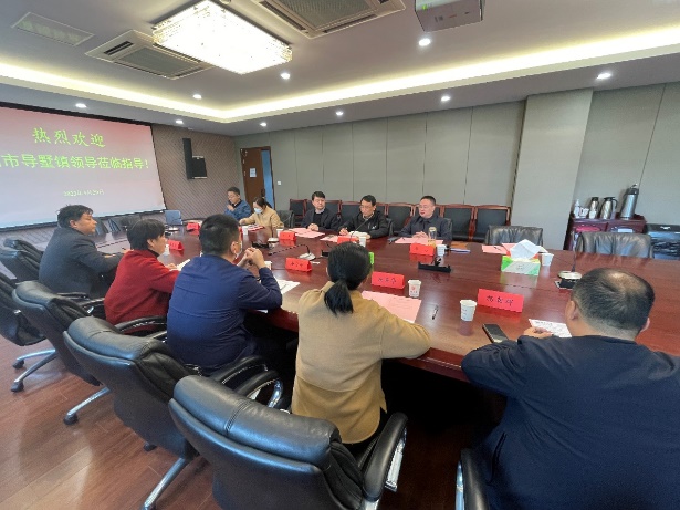 On March 29th, Ningfeng Tang, the Party Secretary of Daoshu Town, Danyang City, led a delegation of five people to visit Kuang Yaming Honors School. Jun Wang, the Party Secretary and President of Kuang Yaming Honors School, welcomed the visiting leaders in the second-floor conference room of Kuang Yaming Honors School. The meeting was chaired by An Zhou, Vice Party Secretary. Together present at the meeting were Hao Dong, the Vice President, Zou Dawei, the Dean's Assistant, Si Linmin, the Youth League Secretary, and Lili Zhu, the secretary of the party committee.