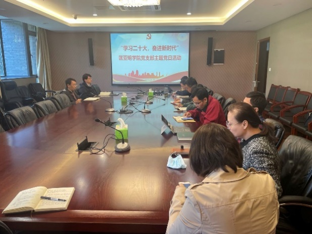 On the afternoon of October 20th, the faculty party branch at Kuang Yaming Honors School conducted a themed party-day activity on 'Studying the 20th National Congress and Advancing in the New Era.' The event focused on studying Xi Jinping's book 'The Governance of China' and the report of the 20th National Congress. Mr. Dong Hao, the secretary of the faculty party branch and the vice dean, presided over the meeting.