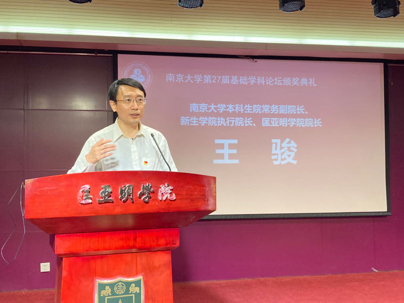 On May 19, 2024, the award ceremony of the 27th Forum of Sciences & Arts of Nanjing University was held in the Guosheng Lecture Hall of Panqi Building, organized by the Kuang Yaming Honors School. The ceremony was attended by Professor Zhou Jilin, a member of the standing committee of the CPC Nanjing University committee, Minister of the Department of Graduate Students’ Affairs, and Executive Vice Dean of the Graduate School; Yuan Junying, Member of the National Academy of Sciences, a fellow of the American Academy of Arts and Sciences, and a Foreign Academician of the Chinese Academy of Sciences; Wang Jun, Executive Vice Dean of the Undergraduate School, Executive Dean of the College of First-Year Students, and Dean of the Kuang Yaming Honors School; Lu Dexin, the General Supervisor in Student Teaching at Kuang Yaming Honors School; Zhou Yuan, Party Secretary of the Kuang Yaming Honors School; Qiao Weihong, former Party Secretary of the Kuang Yaming Honors School; Shao Zebin, Dean of the Honors College at Nanjing Normal University; Wu Congxin, Deputy Party Secretary of the general Party branch, and Vice Dean of Sun Yueqi Honors College at China University of Mining and Technology; Lu Li, Deputy Minister of the Department of Graduate Students’ Affairs at Sichuan University; as well as 200 faculty and student representatives from Kuang Yaming Honors School of Nanjing University, Chu Kochen Honors College of Zhejiang University, Zhiyuan College of Shanghai Jiao Tong University, Wu Yuzhang Honors College of Sichuan University, Honors College of Nanjing Normal University, Sun Yueqi Honors College of China University of Mining and Technology. The ceremony was hosted by Yu Ziqi, a 2023 undergraduate student of the Kuang Yaming Honors School.
