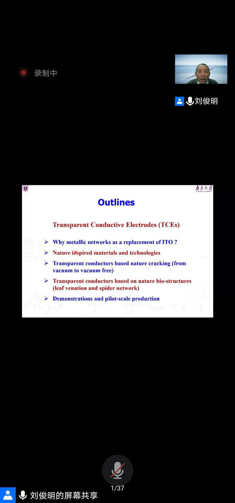 Condensed matter physics has been a long-standing topic in cutting-edge physics, and this afternoon, Professor Liu Junming, a scholar of condensed matter and materials physics from the Department of Physics, gave us a talk on his specialty with the title “How to have the horse run fast but not graze,” on the design of transparent metal network electrodes.