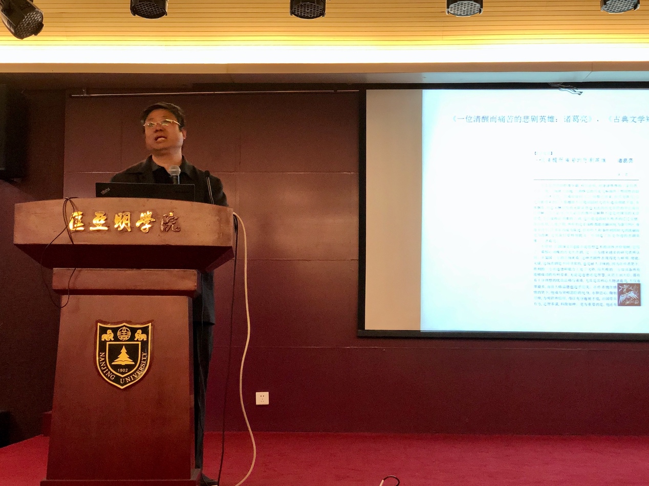 On November 13, Professor Miao Huaiming, of the School of Humanities, gave a lecture to the students of the Kuang Yaming Honors School and the top-ranking class, and the title was “A sober suffering tragic hero: Interpretation of Zhuge Liang's image in Romance of the Three Kingdoms.” Miao serves as a vice dean and doctoral supervisor at the humanities school and is known for having created and kept running an account called blog for ancient Chinese novels on Wechat, a popular social media platform. In his lecture, Miao brought historical events back into life one after another in plain and humorous language, helping students get a better understanding of Romance of the Three Kingdoms in a relaxing and lively atmosphere.