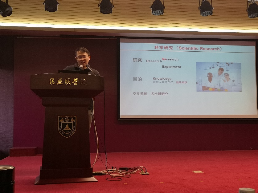 On October 30, Professor Zheng Peng, of the School of Chemistry and Chemical Engineering at Nanjing University, gave students from the top-ranking classes a lecture on “Biomacromolecules.” Because he had graduated in 2008 from the Kuang Yaming Honors School, he began by sharing his deep feelings for his alma mater, and he sincerely hoped that the students cherish their time and actively adapt to their university life.