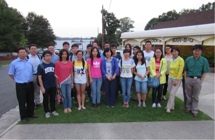 A photo taken in front of the Physics Building (by Cristin Paul, Department of Physics, Duke University); special thanks to Professor Gao Haiyan, chair of the Department of Physics and to Connie Cox (first from the right) from the same department for their careful arrangement.